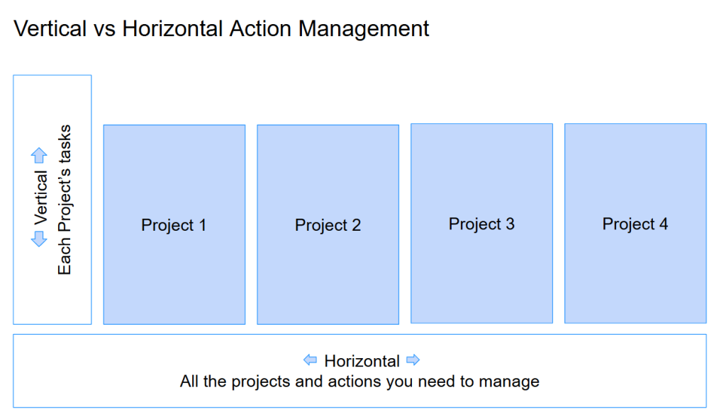 While deep focus on individual projects is important, you can’t forget about everything else on your plate. Horizontal action management ensures you’re giving appropriate attention to all your projects—work and personal.